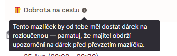 - Dárek je potřeba předat při ukončení zakázky, ne na začátku — je to důležité pro zachování momentu překvapení a konzistentní komunikaci. Průběh komunikace se zákazníkem: 24 hodin před koncem zakázky zákazník obdrží: push upozornění v aplikaci e-mail s informací o překvapení